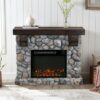Western romanticism warms to life in this striking electric fireplace. Crisp white finish, subtle woodwork and rustic white simulated stacked stone encases the firebox. Extra wide fireplace ignites the senses; cozy heat fills great rooms and reading nooks alike, wowing any crowd. Conjure the ambience of a blazing hearth in an entertaining parlor, living room or dining area with this stunning, traditional fireplace. Energy efficient LED bulbs light the fire, a cost effective way to ignite bliss in any room without professional installation. User friendly remote control offers 4-way adjustability to customize the widescreen fireplace from the comfort of your sofa. Flames and logs harmonize with 5-level adjustment, plus optional down light illumination. An automatic shutoff and glass that remains cool to the touch ensure the fireplace warms safely. Turn off the heat to enjoy the fireplace ambience year round.