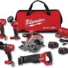 The Milwaukee M18 Fuel 5-Tool Combo Kit delivers users the most advanced 18-volt cordless drilling, fastening, and cutting technology in the industry. This Milwaukee 5 Tool Combo Kit features five M18 Fuel 18-Volt Lithium-Ion brushless cordless tools including a 1/2 in. a hammer drill, 1/4 in. impact driver, Sawzall reciprocating saw, 6-1/2 in. circular saw and LED work light. M18 Fuel is fully compatible with the Milwaukee M18 18-volt cordless system, featuring over 250 solutions. M18 Fuel features the most advanced cordless technology in the industry a Powerstate brushless motor, Redlinkplus Intelligence and Redlithium battery technology, resulting in longer motor life, longer run time, and more power.